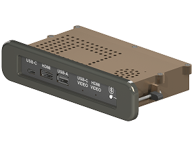 The Elite Media Panel receives video signals from USB-C and HDMI, converts them to Cat6 HDBaseT and outputs them to the Elite Receiver Dongle. The Elite Media Panel also extracts audio signals from the HDMI and USB-C as well as a Bluetooth 5.0 signal and output the audio over two independently controlled audio outputs. The device also supports USB-A and USB-C charging.