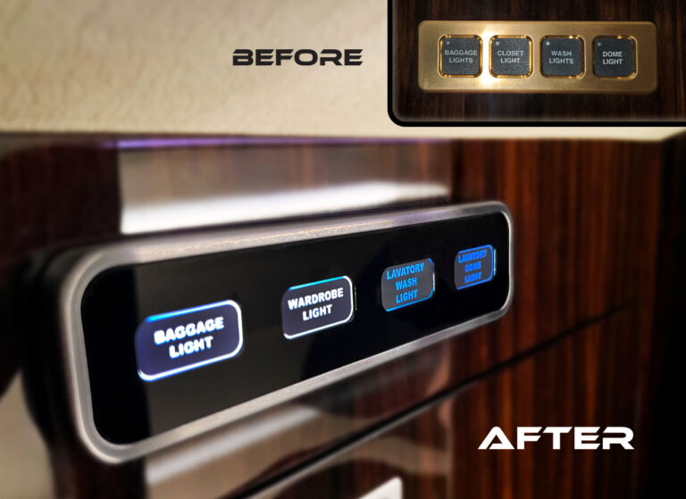 The old mechanical switch gives way to CMS’s sleek touch‑button interface, transforming the cabin experience from clunky and outdated to modern, intuitive, and elegant. Designed for retrofit, the new switch drops into existing cutouts with no extra downtime, delivering a refined finish and effortless control.